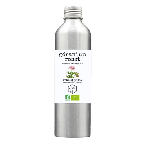 Distillé à partir de nos Pelargoniums rosat cv "Bourbon" & "Egypt".